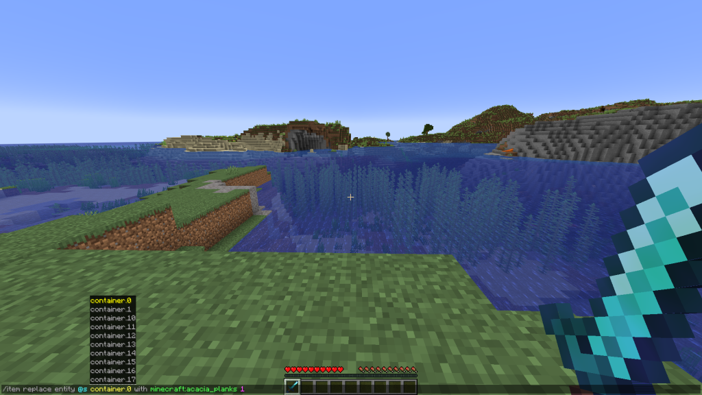 Pressing enter after typing the above command will replace the cursed Diamond Sword in the leftmost slot with 1 Acacia Plank.